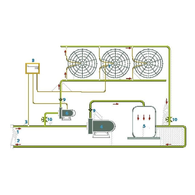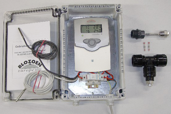 De temperaturen van het zwembadwater (1) en van de Blozoen zonnecollector (7) worden continu met elkaar vergeleken. Het regelsysteem (8) beveelt de zonnecollectorenpomp (6). Op dat moment start de circulatiepomp en pompt het zwembadwater door de solarcollector. Dit verwarming proces start enkel als er voldoende energie beschikbaar is. De terugslagkleppen (9) zorgen ervoor dat het water zeker de juiste richting volgt.