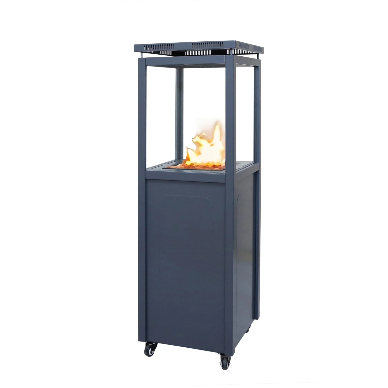 Deze verwarming op gas voor terras is handig en veilig. Vooreerst kan onderaan een gasfles (propaan – standaard Primagaz fles) van 6 tot 11kg geplaatst worden. Bijkomend zorgen de wieltjes zorgen voor de mogelijkheid om de verwarming eenvoudig te verplaatsen. Tot slot is het design is modern.