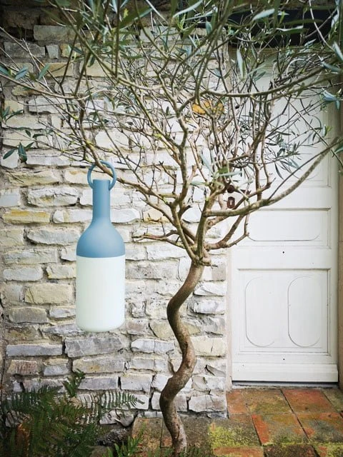 Elo outdoor tafellamp in de vorm van een wijnfles. Beschikbaar is 7 verschillende kleuren. Dimbaar warm wit licht. Waterdicht, geschikt voor buiten en binnen. Lamp kan gebruikt worden als draaglamp of lantaarn, tafellamp of kan bijvoorbeeld als sfeerverlichting in een boom opgehangen worden.