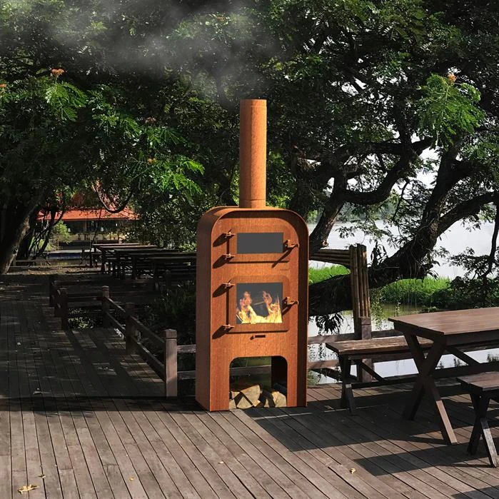 - Een tuin kachel met pizzaoven en met dubbelwandige vuurkamer