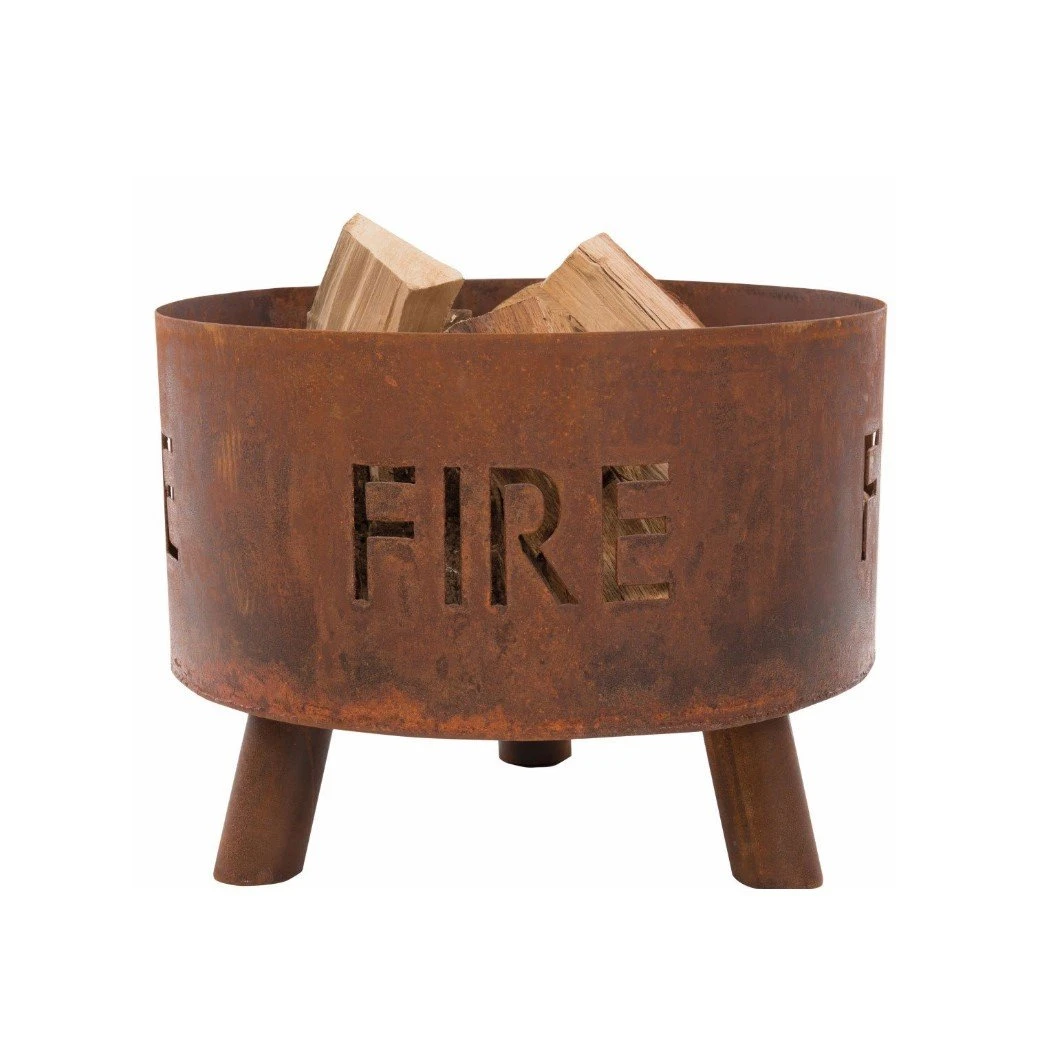 Deze handgemaakt vuurschaal zit tussen een vuurkorf en een vuurschaal. Door de “FIRE” uitsparing aan de 4 zijden krijgt deze vuurmand een moderne uitstraling. De 3 stevige poten zorgen er voor dat dit tuinvuur niet kan omkantelen.