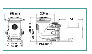- De afstand tussen de assen van in en uitgang zijn identiek aan de Hayward RS II. Hierdoor kan een Hayward RS II Perfect vervangen worden door de nieuwe verbeterde Tri Star.