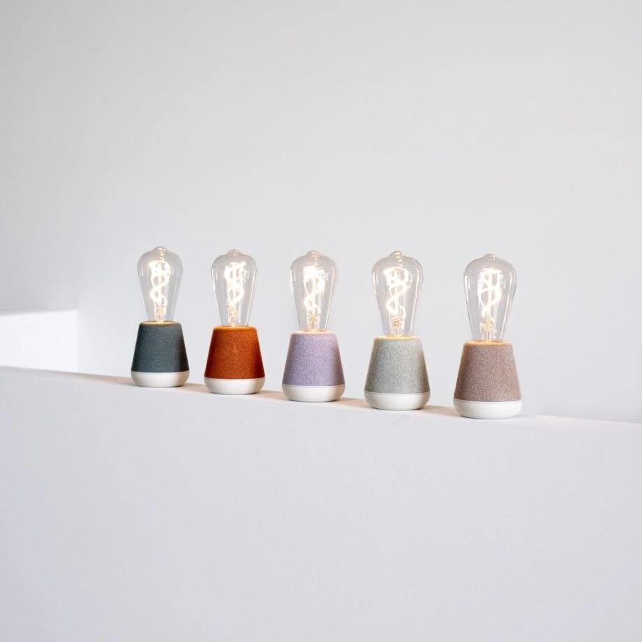 Dit type van de Humble one is beschikbaar in 5 zachte kleuren die passen in heel wat interieurs. Het typische aan deze lamp is de witte voet. de gebreide stof is vuilafstotend.