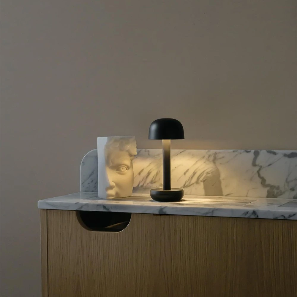 De Humble Two table light is een sfeerlamp in 3 metalic kleuren. Met deze draadloze sfeerlamp zit de sfeer in het poolhouse of op de tafel van resto & bistro direct gemaakt.