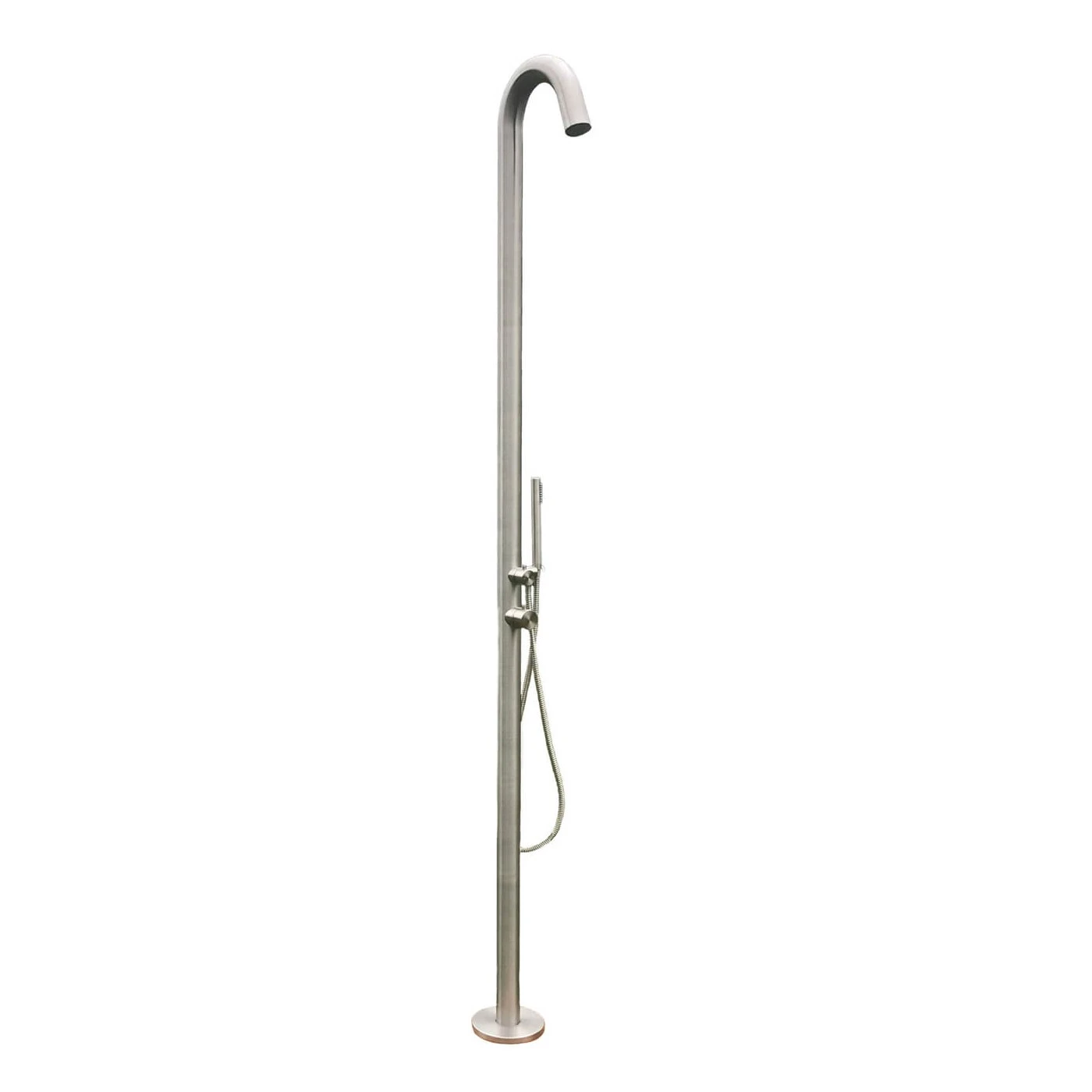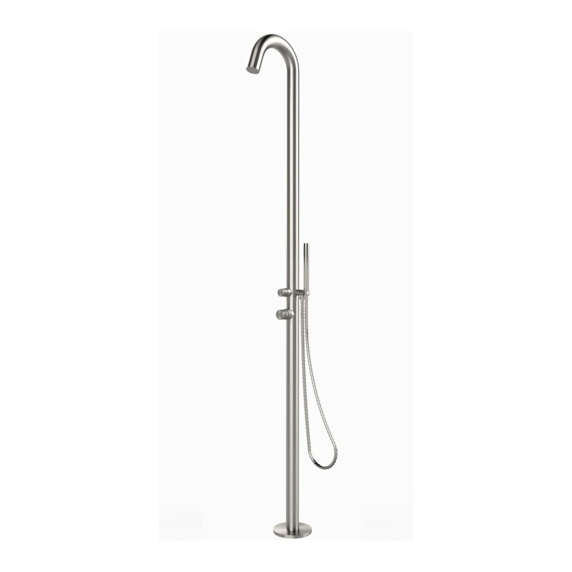 Stijlvolle Ideal Sylt tuindouche voor op het terras aan het zwembad of aan het poolhouse. Vervaardigd uit RVS 304. Aansluit mogelijkheid voor warm en koud water.