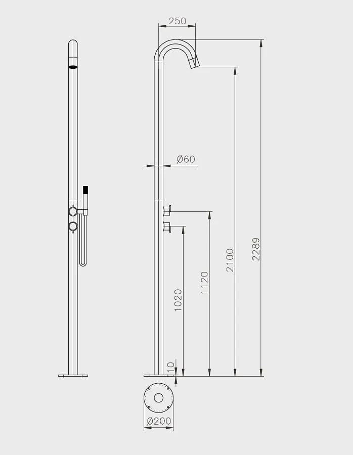 Deze buitendouche hebben we ook in ons assortiment als Zwarte buitendouche. Het verschil is de afwezigheid van de voet sproeier op deze RVS douche. De zwarte douche heeft wel een voetsproeier.