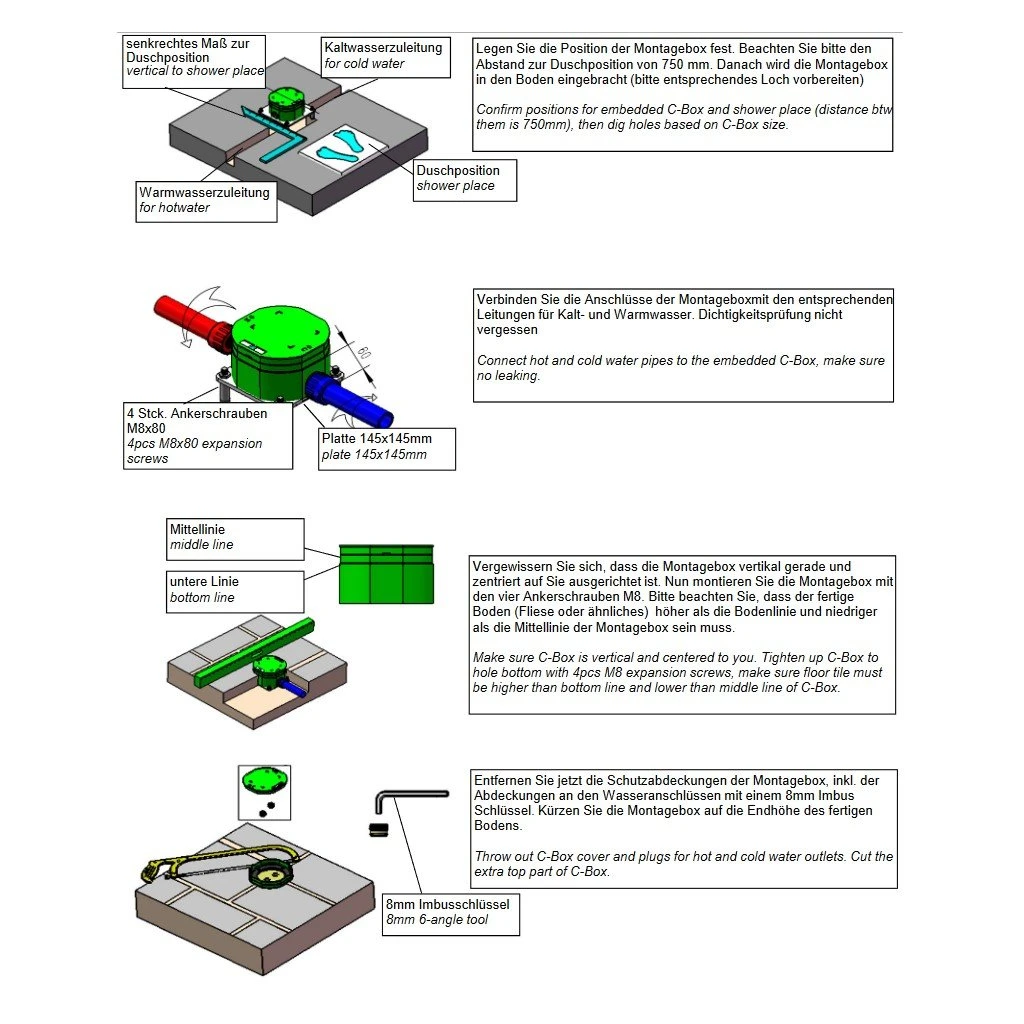 Alle toebehoren voor de montage zitten bij de douche. Daarom vraagt de montage weinig voorbereiding en kan u als handige doe het zelf installeren.