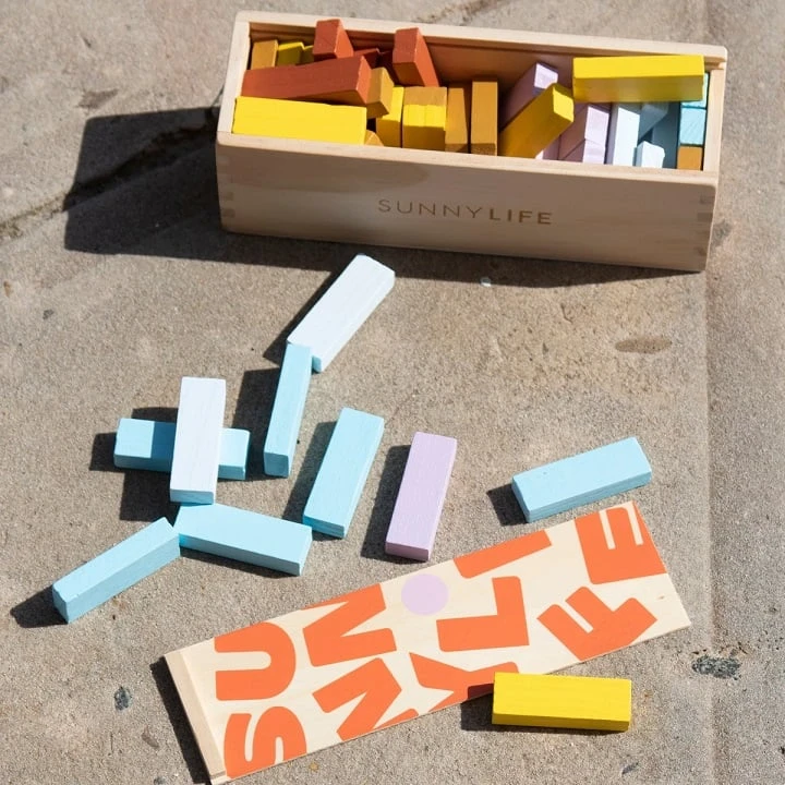 - Inclusief 54 travel sized houten blokken in een handige opbergdoos