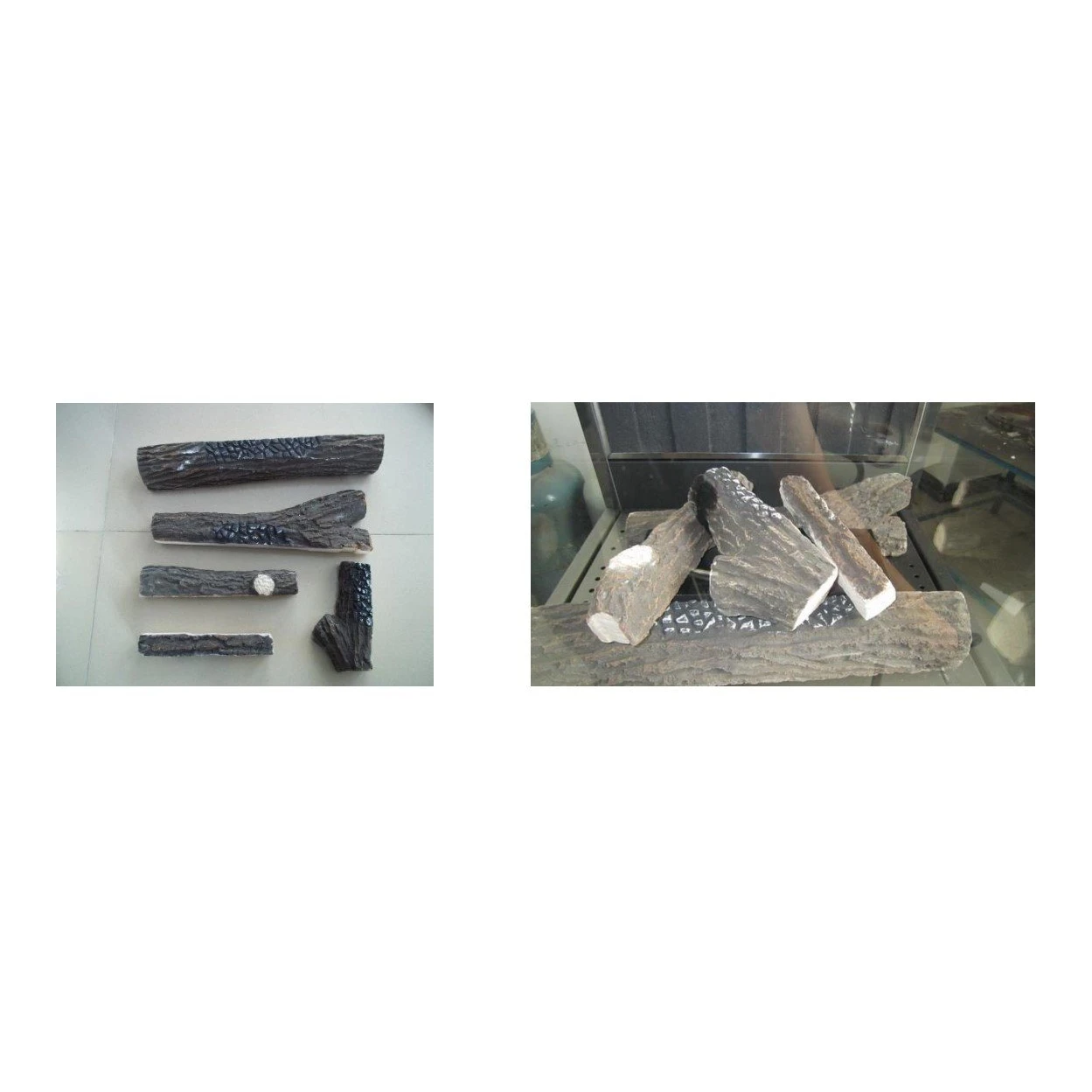 - branderbed afgewerkt met keramische houtblokken, dus volledig inert