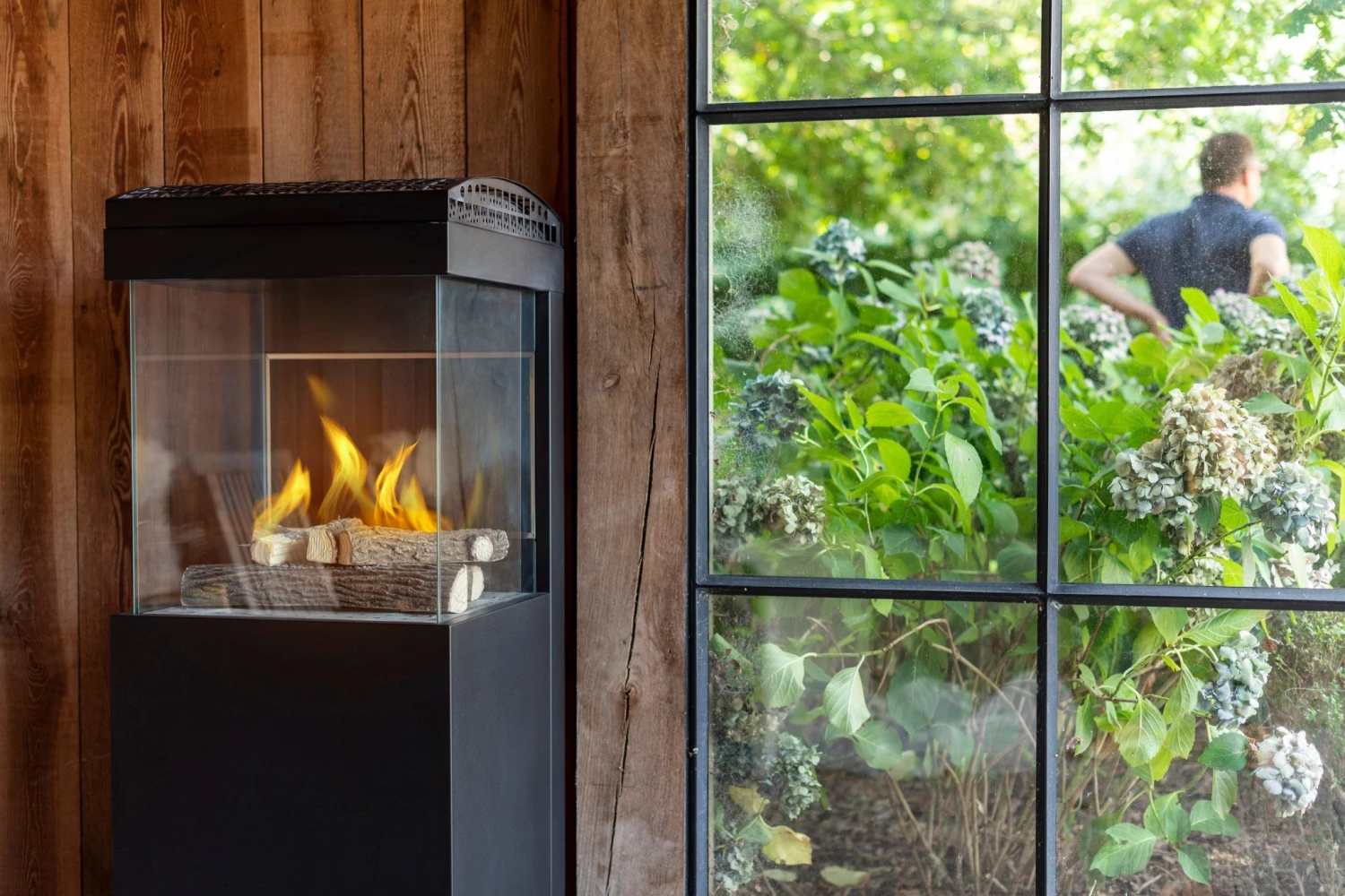 Zeer handige, mooie en gezellige gashaard voor buiten. Geschikt voor op een overdekt terras, in een open poolhouse of bv op een horeca terras.