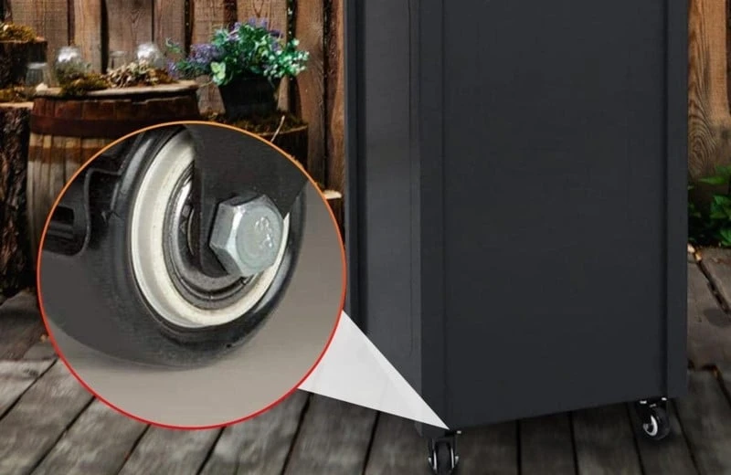 - er zijn onderaan de verwarming wieltjes met een rem, daarom is de gasbrander beter beschermt door bv verplaatsing door de wind en staat deze stabiel