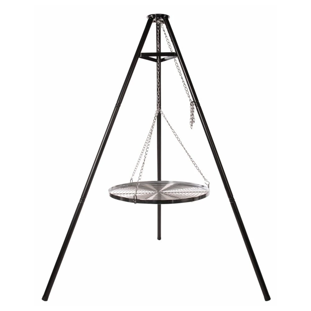 Deze driepoot is handig bij de Salo vuurschaal. Deze vuurschaal is verkrijgbaar in 60cm en 80 cm diameter. De verchroomde gril rooster hangt aan vast met een stevige ketting, in hoogte verstelbaar. Klaar met eten en BBQ’en, dan kan je de statief barbecue tripod wegnemen en de vuurschaal heerlijk opstoken voor een gezellige lange avond aan het kampvuur.