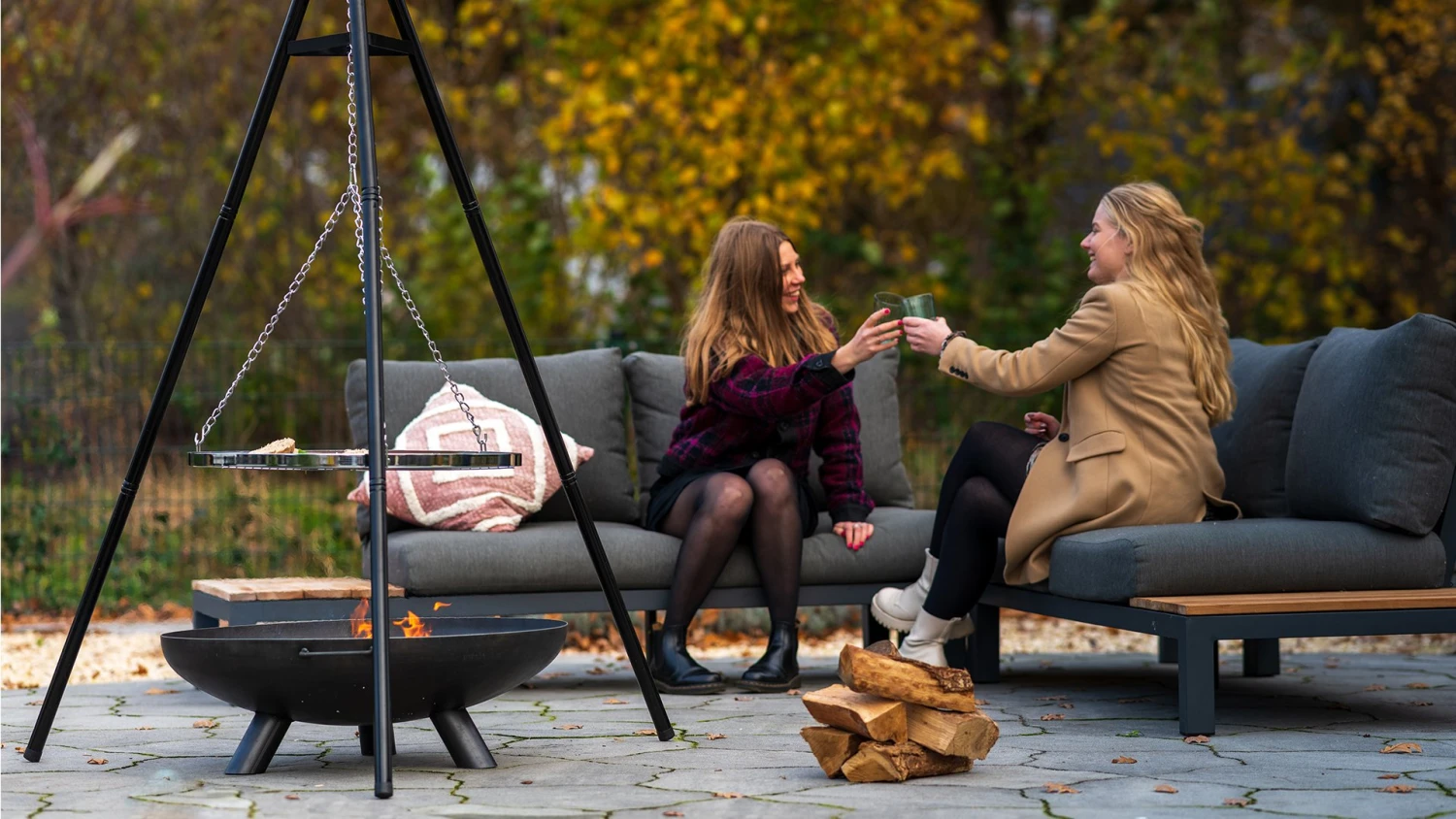 Handige statief barbecue voor boven een vuurschaal. De hoogte van het grill rooster is regelbaar en de diameter van de grill is 65cm. Op deze manier kan je de warmte voor de grill zelf gaan bepalen en regelen.