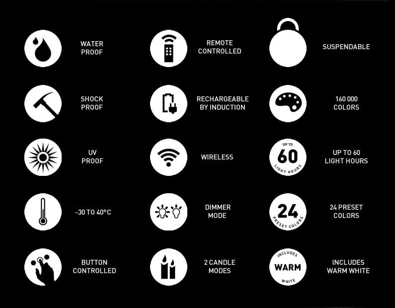 De Imagilights Tebur taffelampen met LED zijn draadlooze tafellampjes. Ideaal als alternatief voor kaarsjes op tafel. Door middel van een uitklapbare hangring is dit ook geschikt om op te hangen in een boom of parasol. De kleurbediening zit onderaan de lamp of is mogelijk via afstandsbediening.