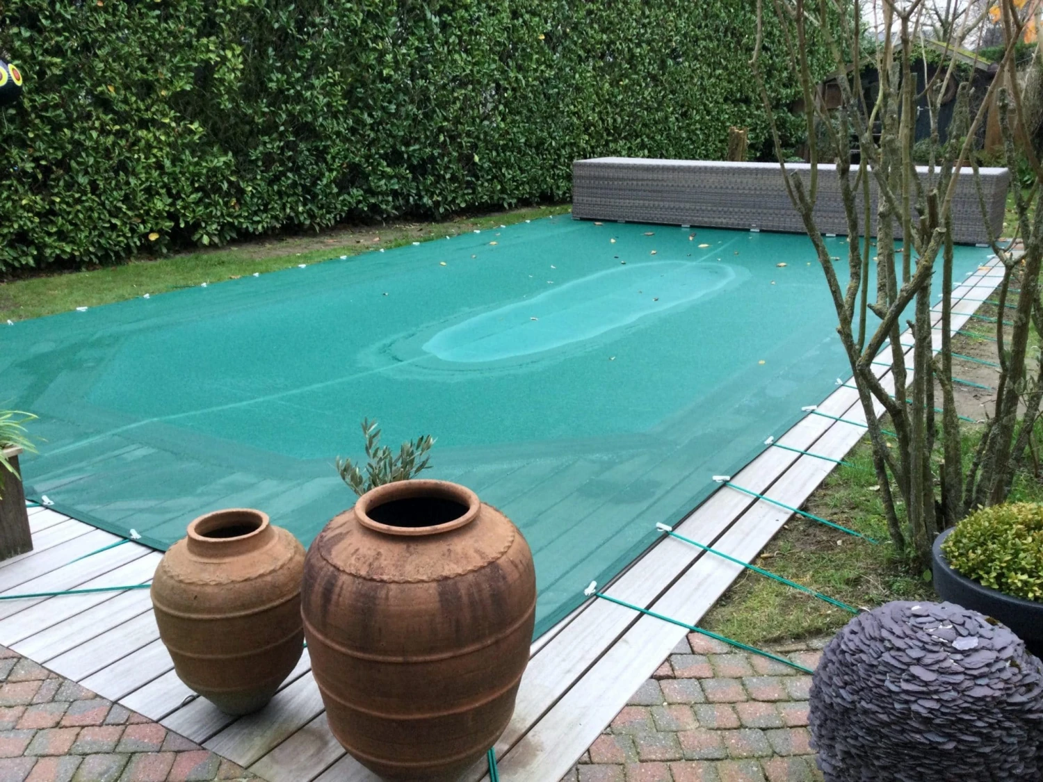 Winternet PVC-netwerk zorgt ervoor dat blaren, dieren, vuil, enz. worden tegengehouden tijdens de winter. Het water kan wel doorsijpelen.