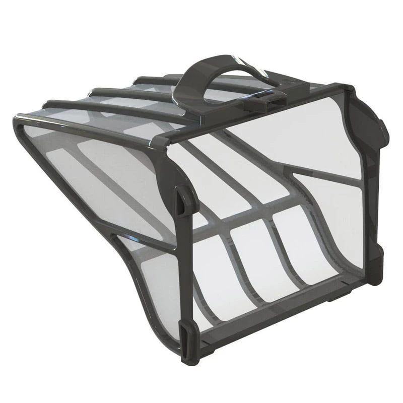 Vortex robot filtermand fijnheid van 60µ (fijne filter) – 100µ – 200µ (grove filter). De grove filter kan je gebruiken als voorjaarsfilter. Eenmaal de grootste vuildelen uit het zwembad zijn, kan je de fijne filtermand gebruiken van 60µ.