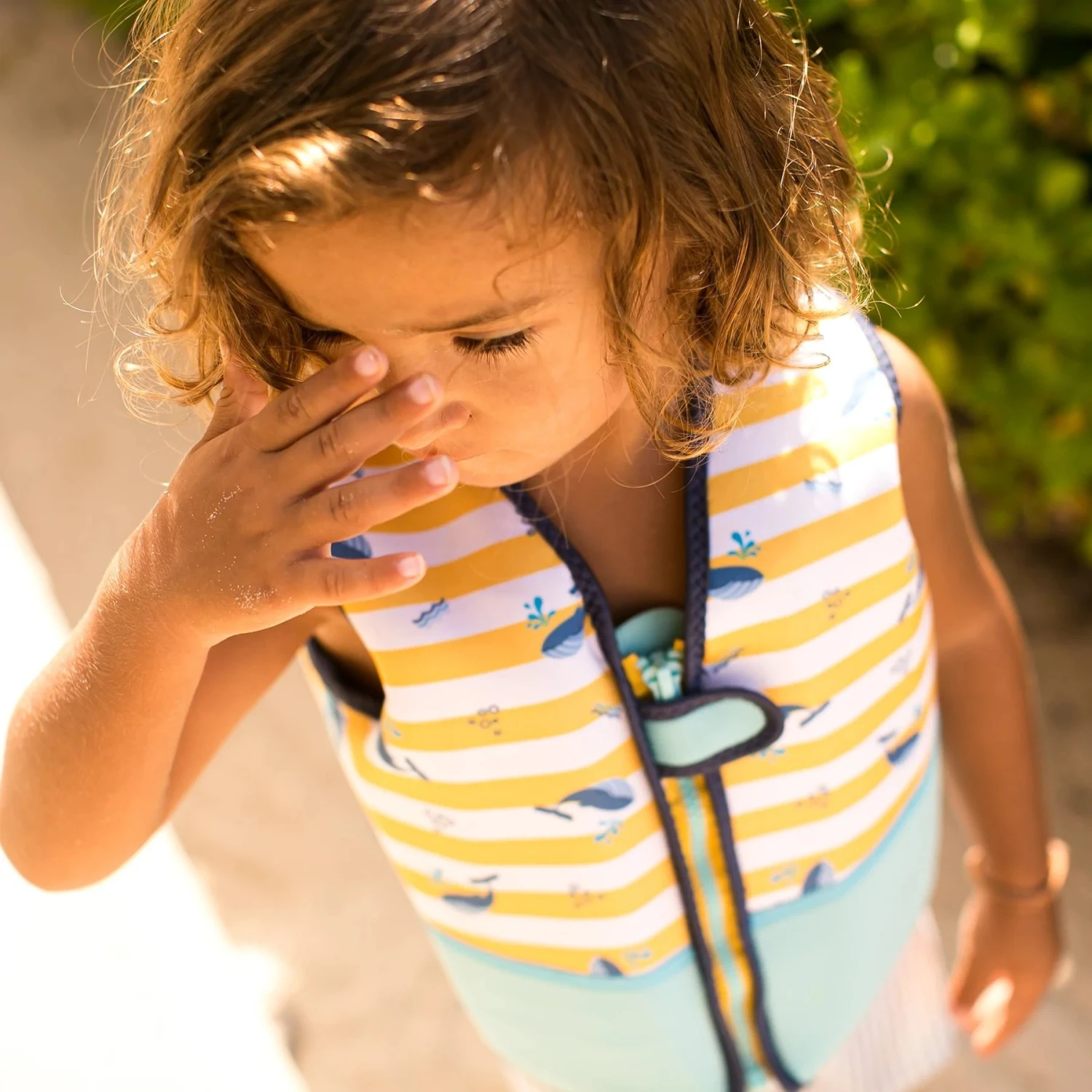 Zwemvest met walvissen 18 – 30kg voor kinderen van 4 – 6J veilig te laten zwemmen en met een gerust hart te laten genieten.